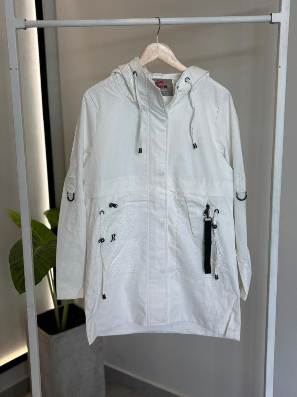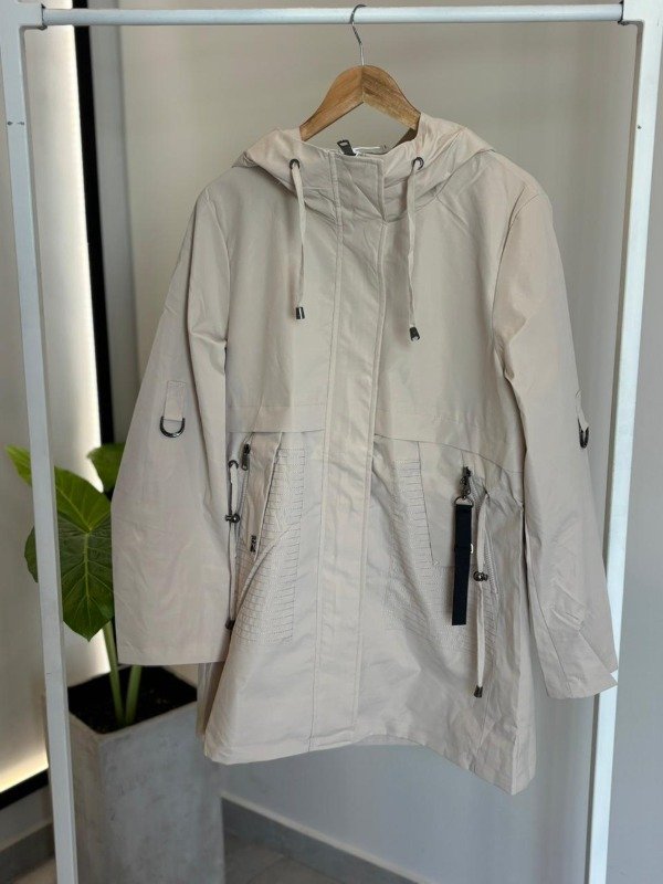 Piloto línea IRUN. Tiene bolsillos con cierre, capucha (fija), cordón regulable para ajustar cintura y tira regulable para las mangas.