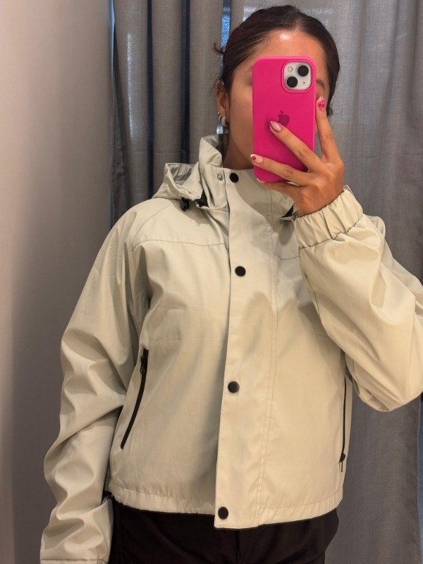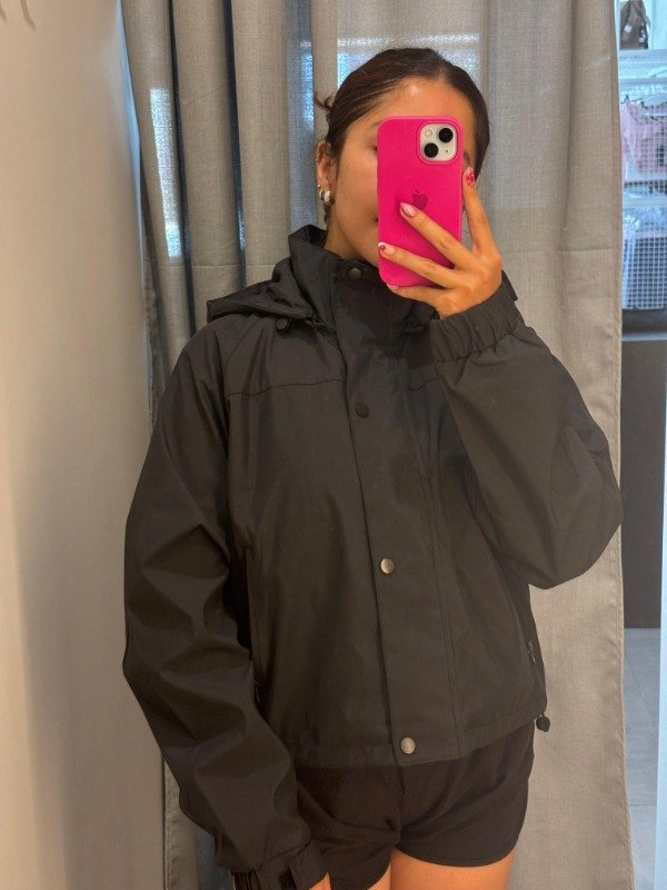 Camperas rompe viento (modelo cortito). Con capucha desmontable, botones y cierre.