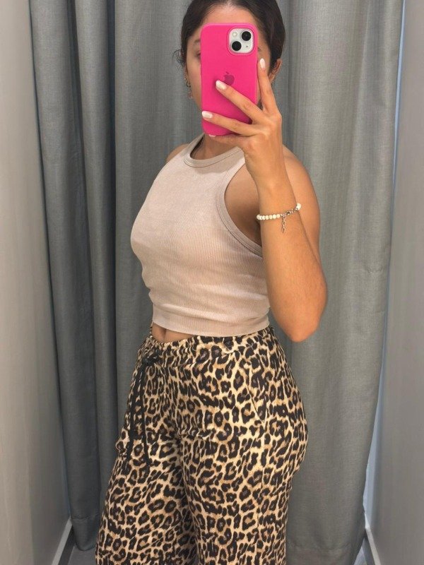Pantalon palazo línea cien por ciento, de tela darlon (super calentita, suave y cómoda). Bolsillos y cordón ajustable en la cintura, estampa de animal print