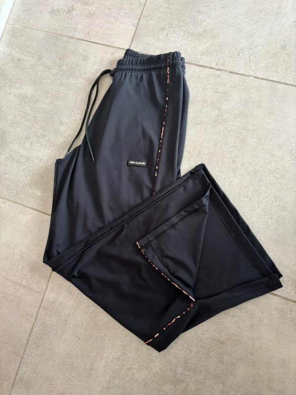 Palazzo línea cien por ciento. Es de tela two face (doble fas), no trasluce nada, es gruesita y de alta tecnología. Tiene tajos en la zona de los pies, cordón regulable en cintura, bolsillos y línea de animal print adornando todo el largo. No trasluce