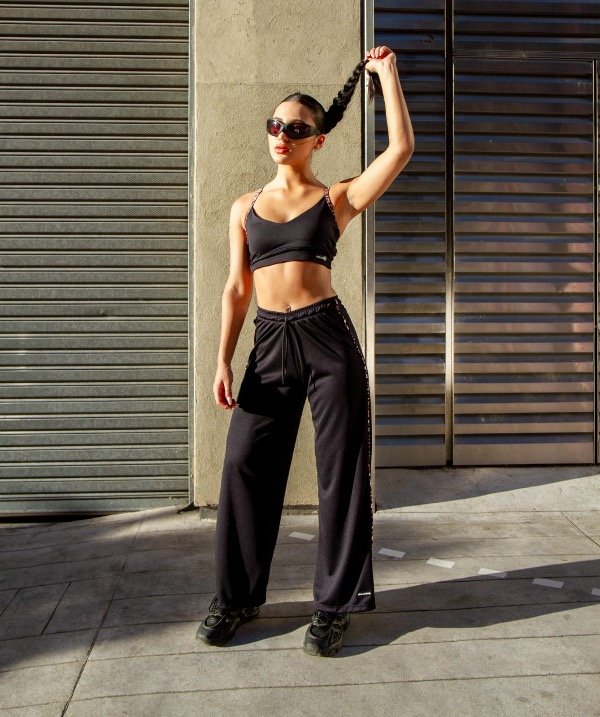 Pantalón palazo Olivia. Con cordón y vivos en animal print