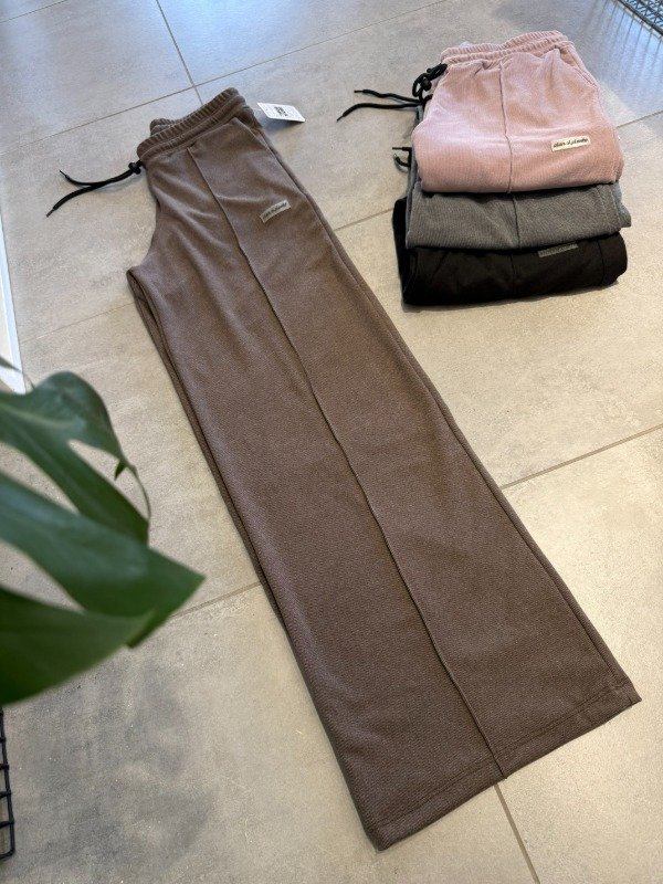 Pantalón de tela darlon (esta tela es nueva, de tendencia, viene a reemplazar la térmica y el micropolar), línea cien por ciento. Tiene dos detalles de costuras en el frente, bolsillos y cordón regulable en cintura.