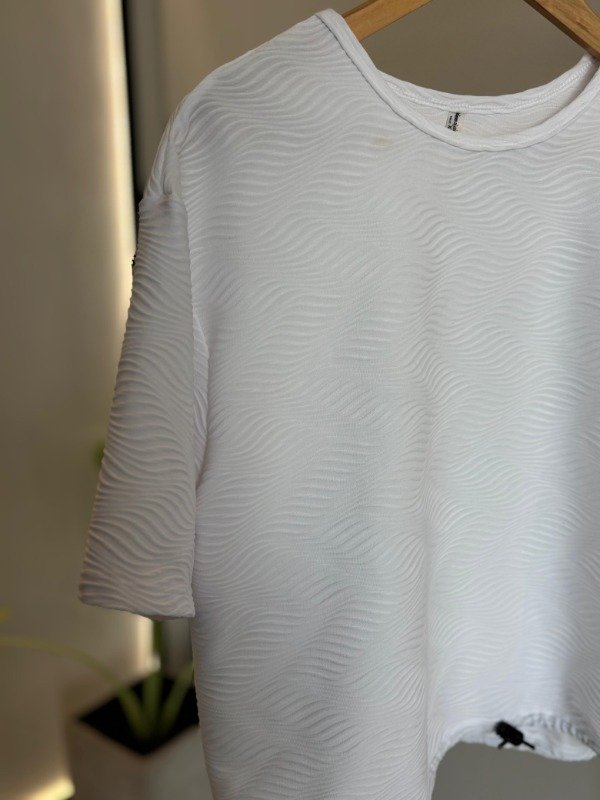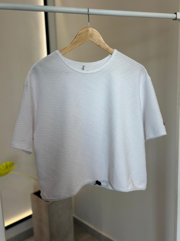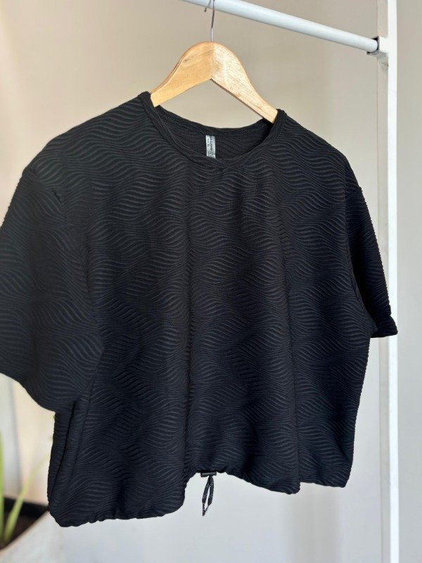 Remera corte crop línea CXC. Tela tramada y cordón regulable en cintura