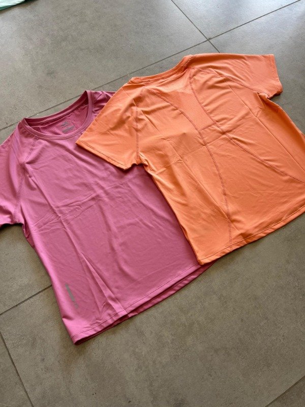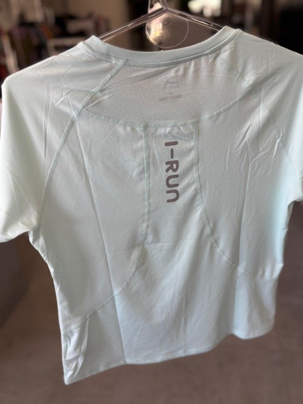 Remeras de lycra lisas línea IRUN. Vienen en colores pastel y atrás en la espalda tienen un detalle de dryfit para que respire