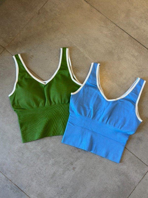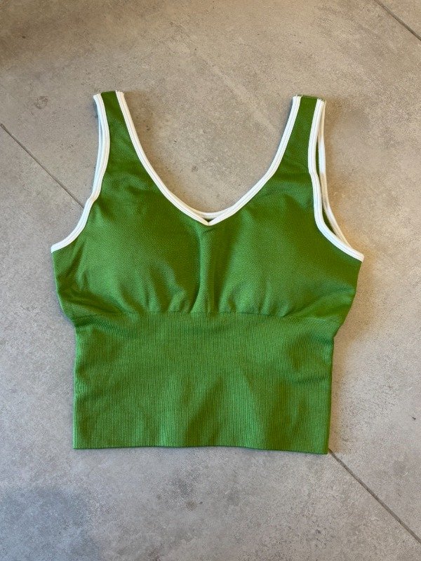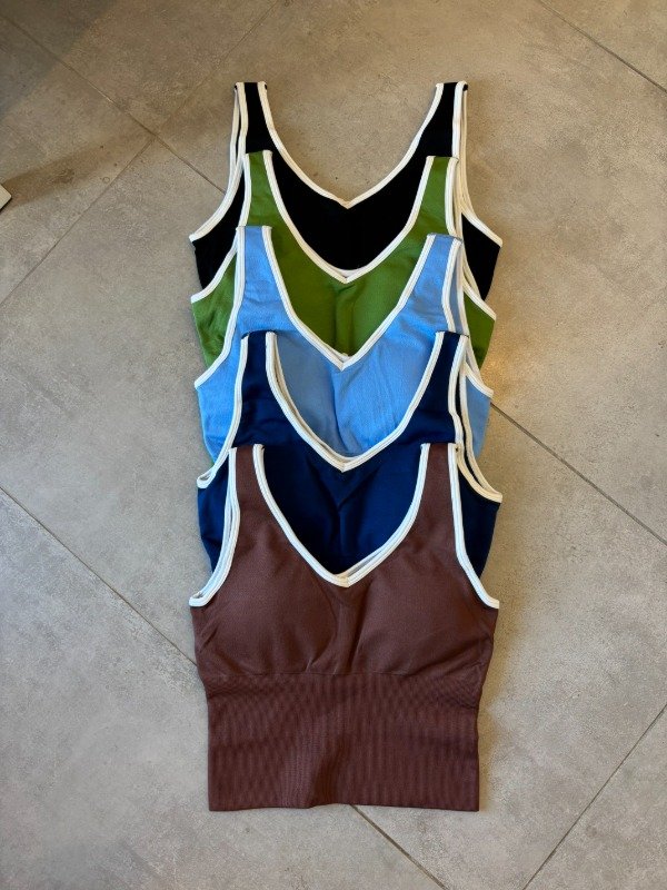 Crop línea DFINE. Es larguito, con tiras anchas y líneas blancas que contornean. Comprime al 100%, calidad y comodidad garantizadas. Esta tela tiene una tecnología ultra moderna que maximiza cada entrenamiento, no trasluce, no se estira y no pierde forma.
