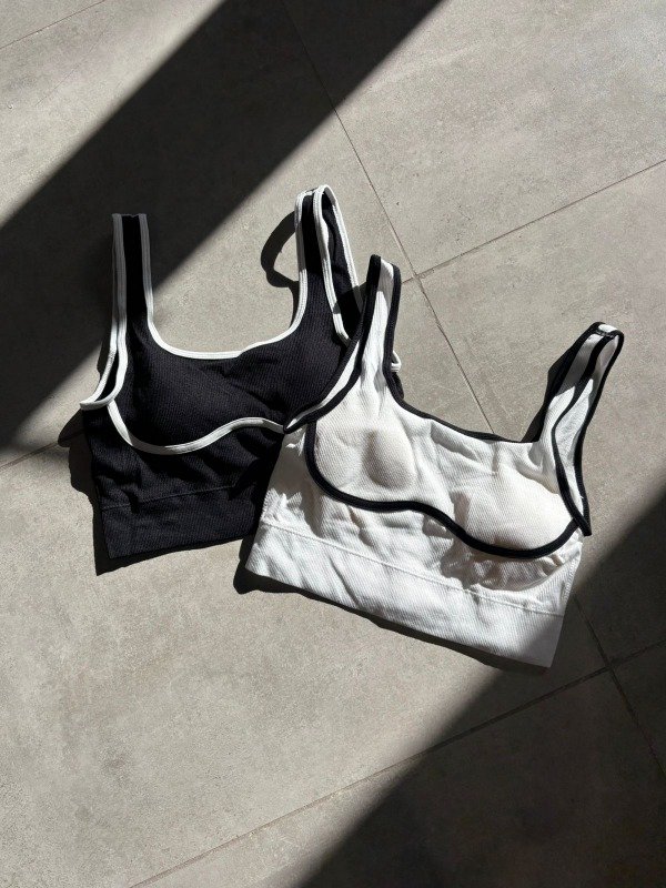 Crop top línea vicblack. En blanco y negro con líneas acompañando los contornos