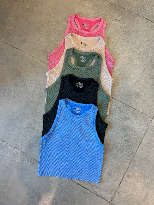 Crop top línea vicblack jaspeado. Espalda deportiva, en varios colores