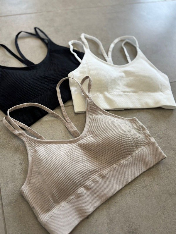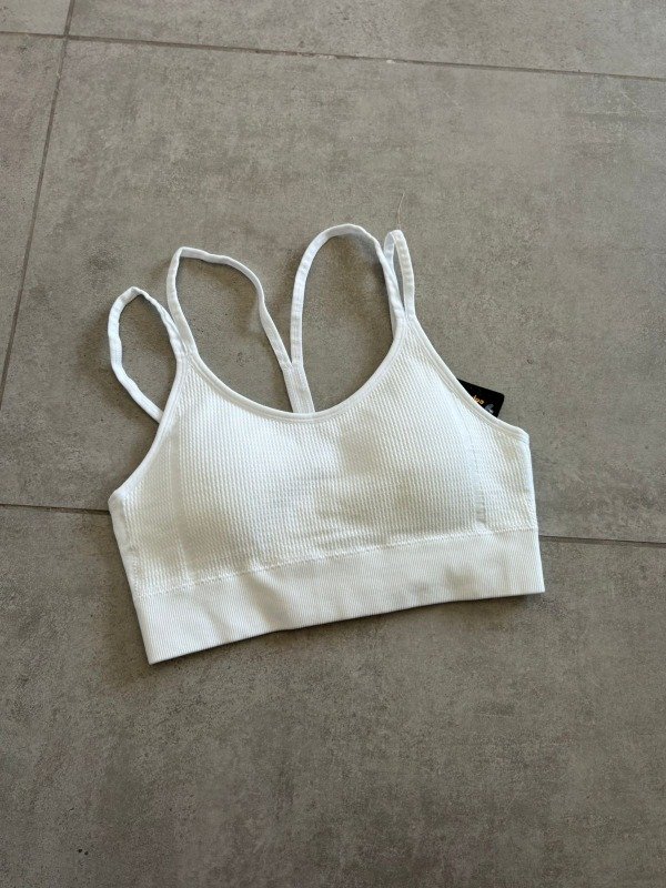 Top línea capicúa. Tela tramada con tasas desmontables. Ganchitos regulables en la espalda
