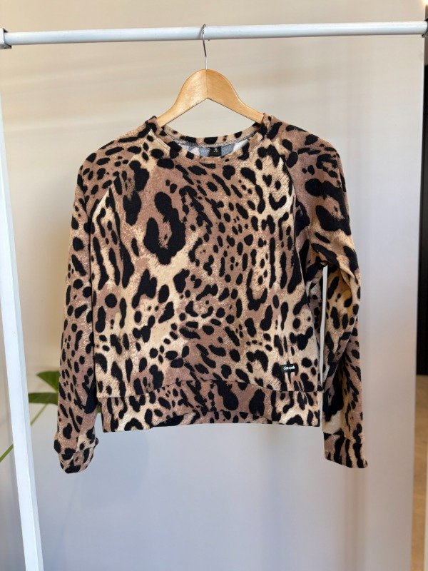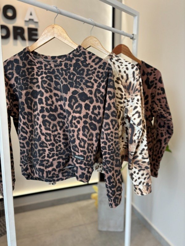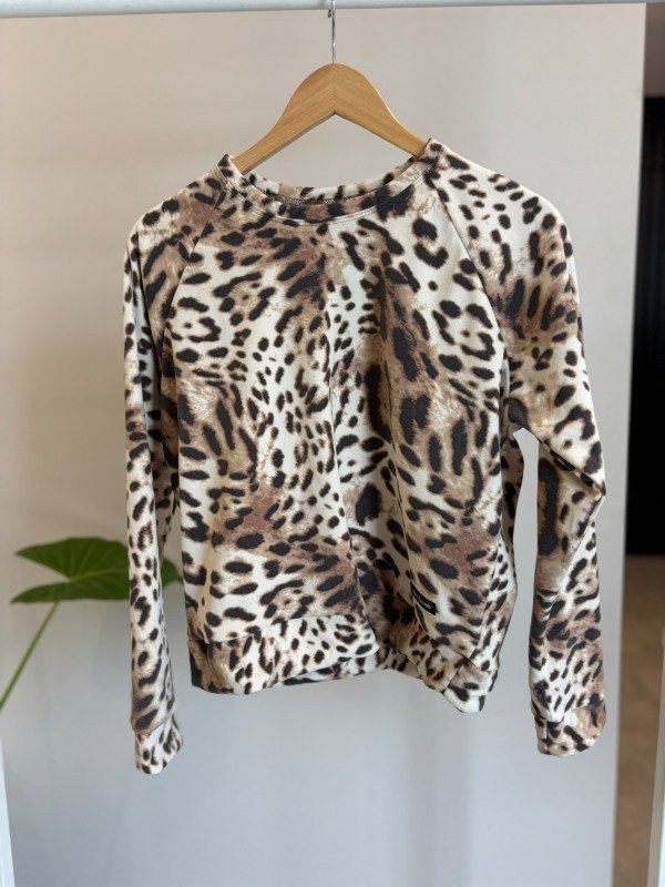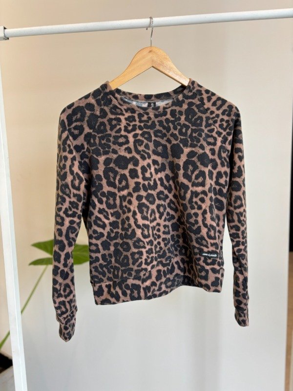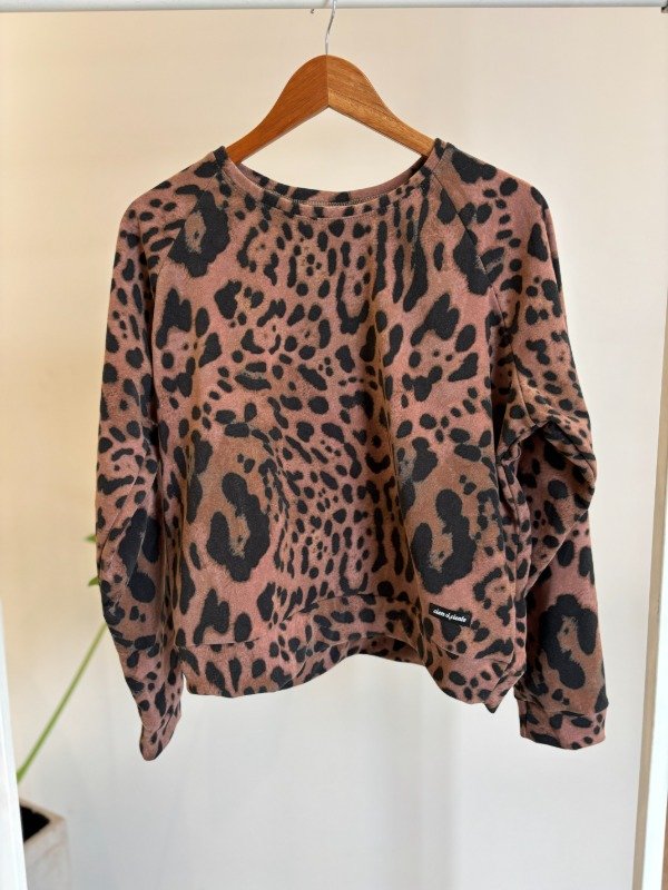 Buzo animal print, línea cien por ciento. Es de tela darlon, suave y calentito, ideal para combinar con una prenda deportiva o urbana.