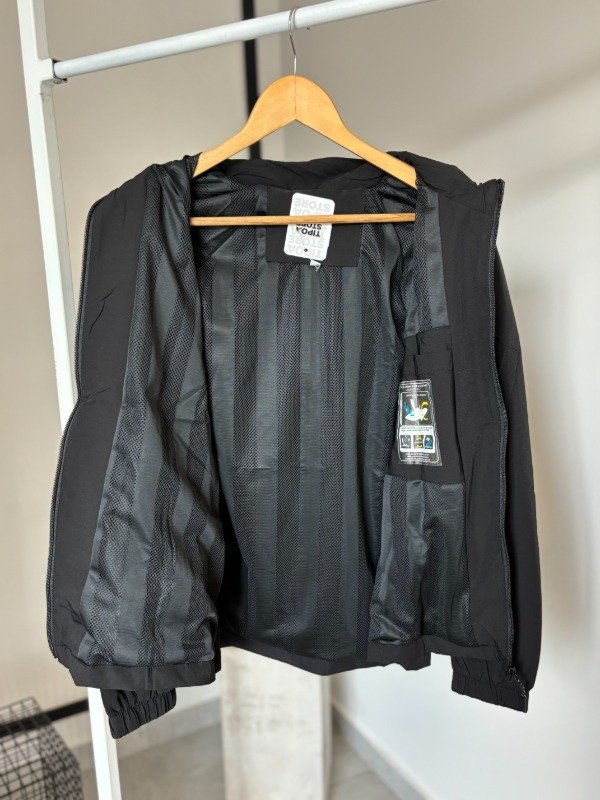 Campera rompeviento impermeable. Es un modelo más largo que los anteriores. Evita el ingreso de frio, por lo que es calentita y abriga más que los rompe viento tradicionales. Perfecta no solo para los días de viento, sino también de lluvia. Es forrada en su interior, con caucha desmontable y bolsillos c/cierre. Color negro