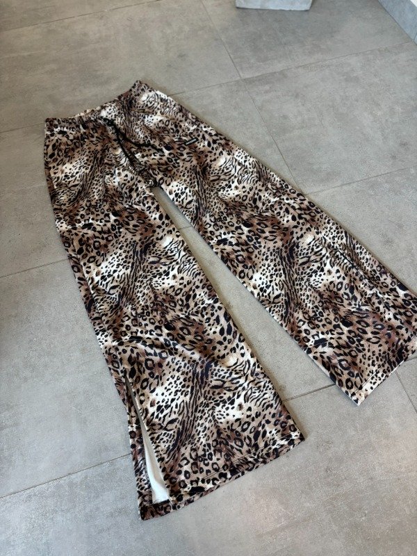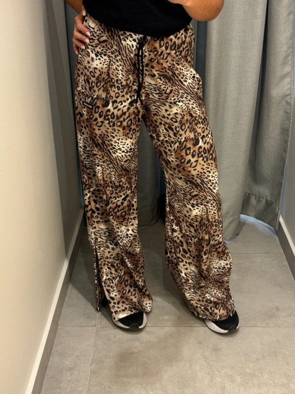 Palazo de animal print, línea CXC. Es de tela two face, gruesita, no trasluce nada. Cordón regulable en cintura (sin bolsillos). Tiene detalle de tajos en los costados. Caída y calce 100%